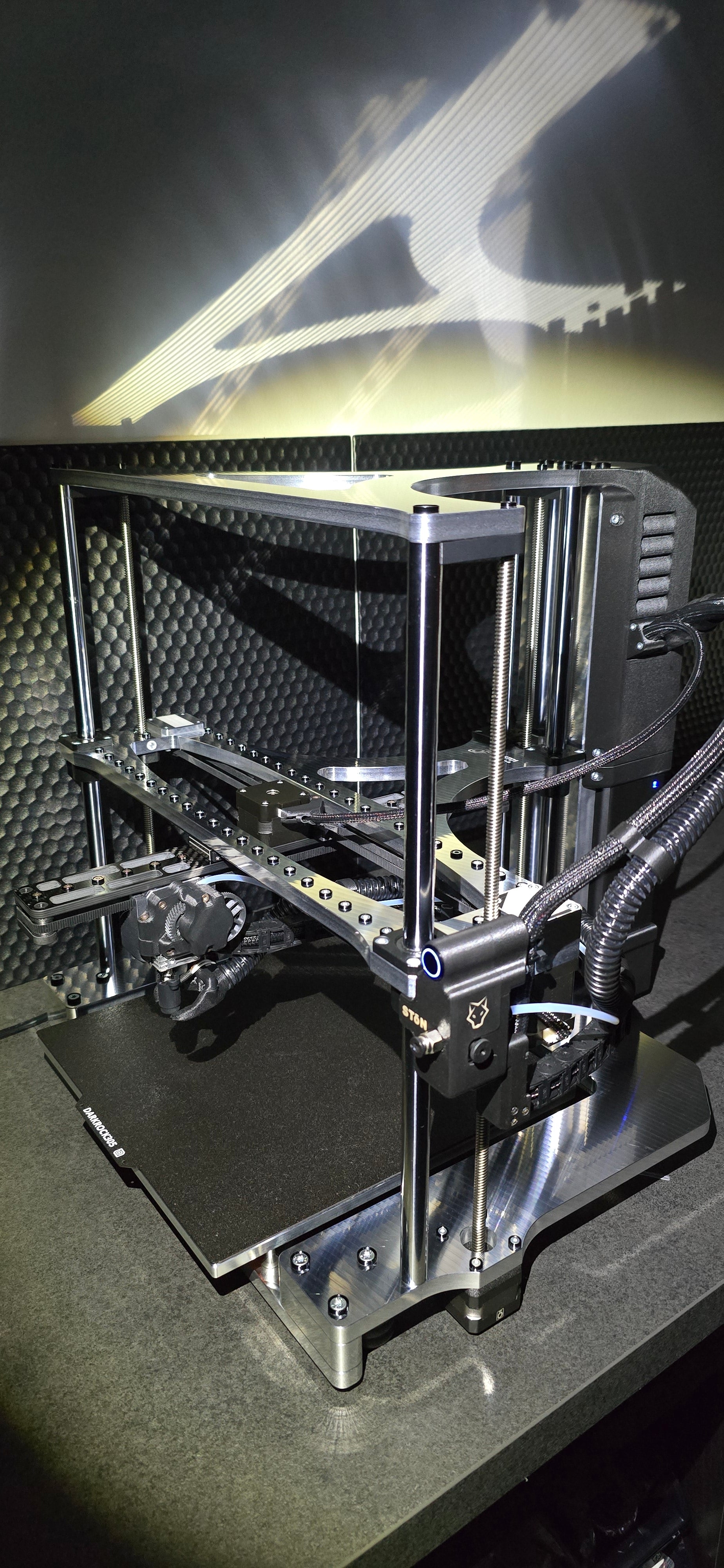 The STōN-Wolf is built to last. No corners cut. With a 300mm build plate, a flying gantry, and a 12mm thick CNC-machined frame. Powered by a 48V motion system, Klipper firmware, and an RPi CM5, and a CPAP blower. Wolf is designed to redefine speed and quality. This is a machine is proudly designed and built in the Czech Republic. We bulld these 1-by-1 and you can get feedback from your actual builder.
