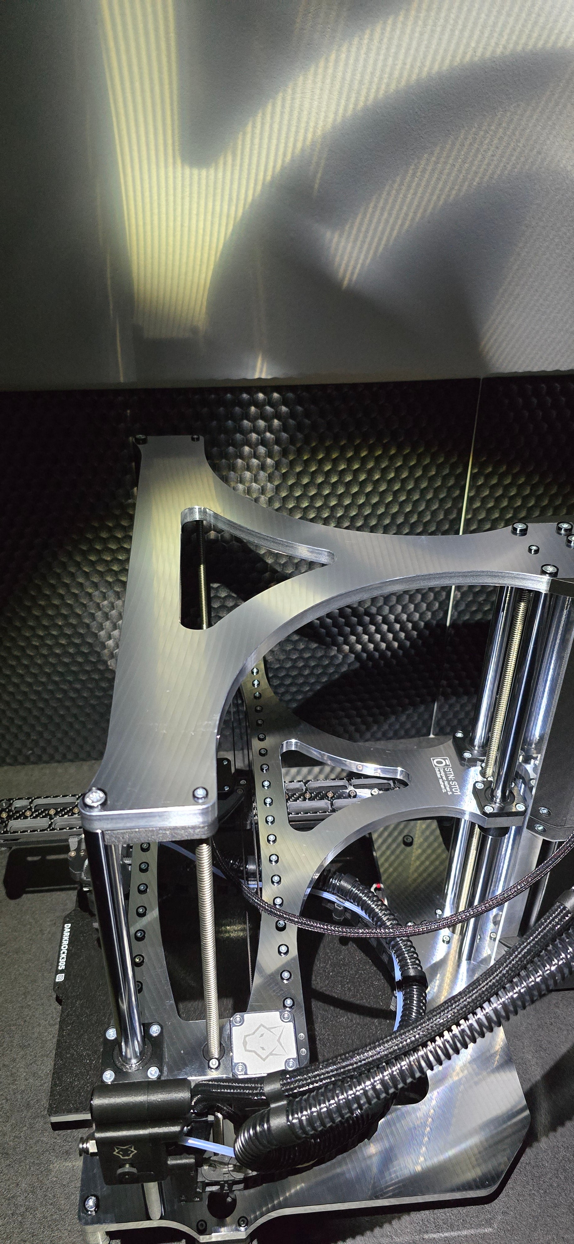 • Carbon fiber Y-gantry with high-temperature epoxy, 18mm thick.